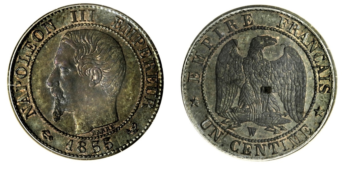 France, Second Empire, Napoléon III (1852-70), Centime, 1856-D, Lyon (Le Franc 102.28; Gad 86), brown patina overlying lustrous original surfaces, rare, in early PCGS holder, graded MS63BN