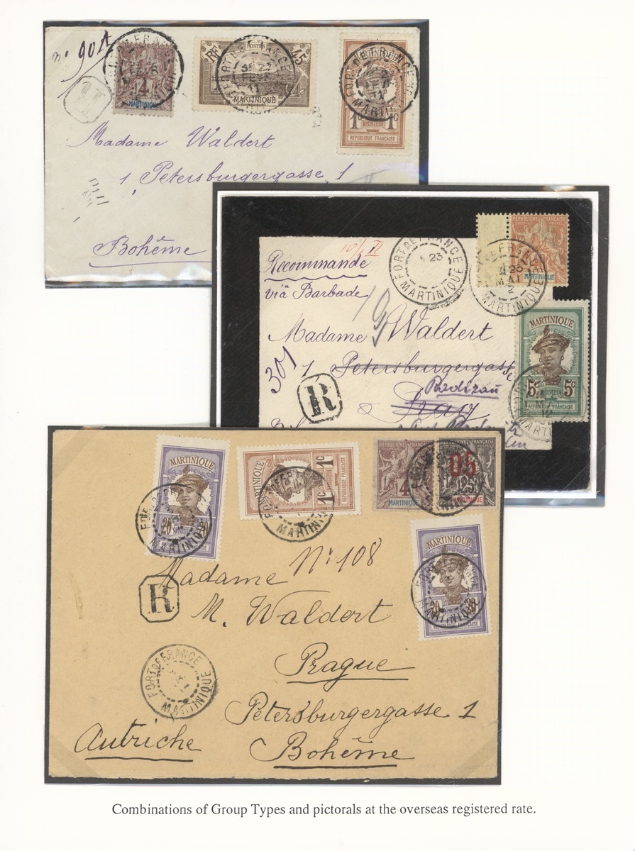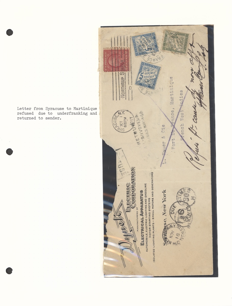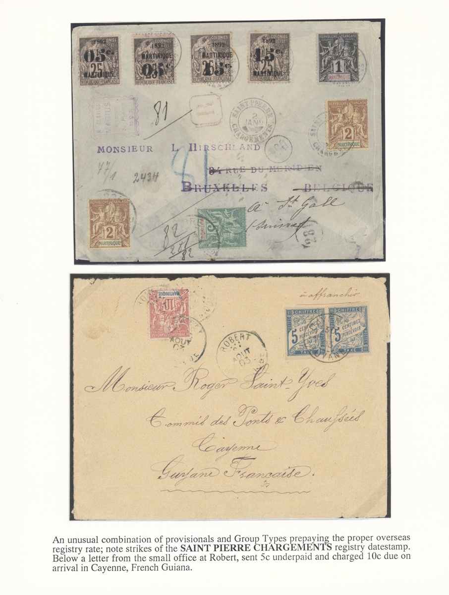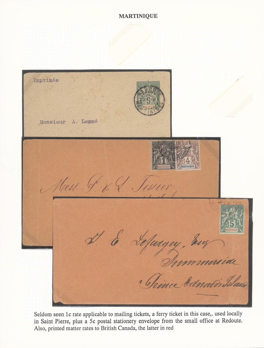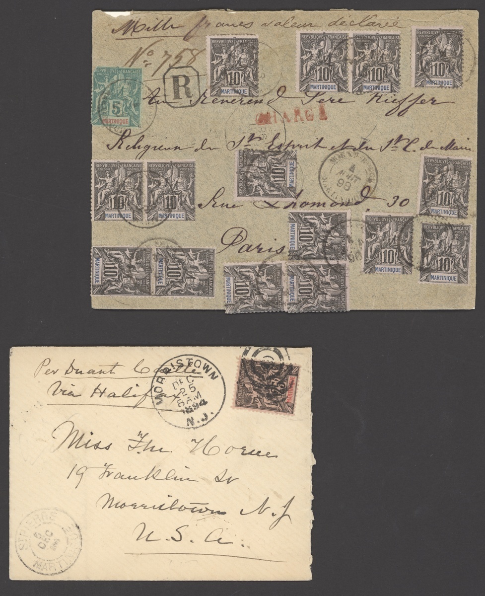 1894-1917 selection of twenty covers and seven cards, including 1894 cover to Morristown cancelled on arrival with concentric circles, 1908 declared value letter to Paris franked 5c., 10c. (15) with Morne Rouge cancellations, 1904 p.p.c. franked 1904 "10" on 30c., etc., many small Village cancellations; mixed condition but an interesting lot. Photo on our website