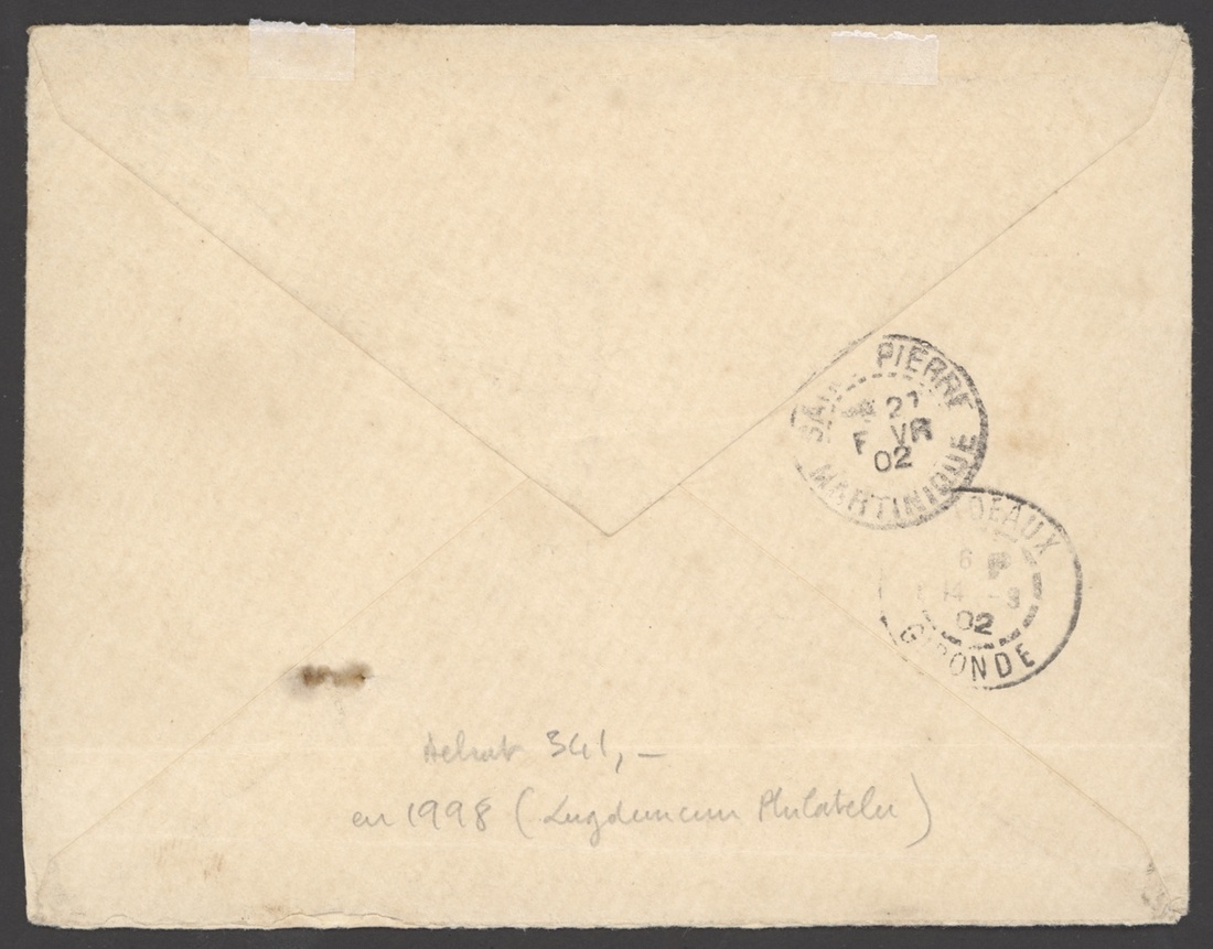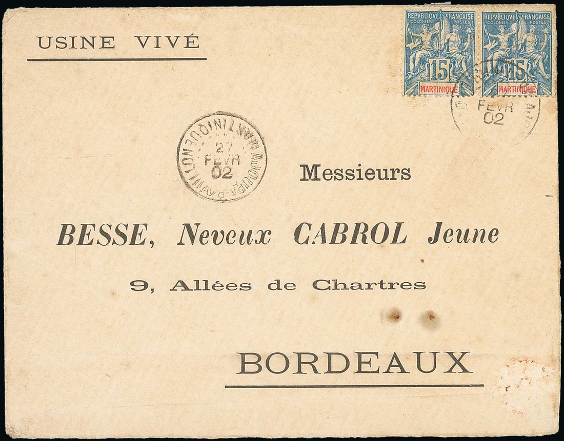 Ajoupa-Bouillion: 1902 (27 Feb.) envelope to Bordeaux franked 15c. (2), Ajoupa-Bouillion cancellation, transit and arrival markings on reverse; a few small traces of stains, fine
