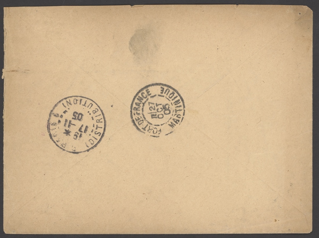 Saint Joseph: 1905 (26 Oct.) envelope registered to Paris franked 40c. with blueSt. Joseph/Martinique dotted circle cancellation, transit and arrival markings on reverse; the envelope a trifle discoloured at top
