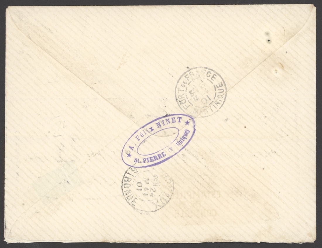 Ste Luce: 1901 (5 May) envelope registered to Bordeaux franked 10c., 15c. (2) with Ste Luce/Martinique cancellations, transit and arrival datestamps, light horizontal bends, fine