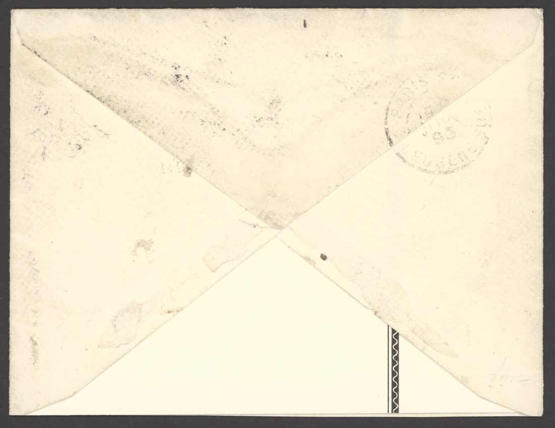 1893 (June) envelope to Paris franked 15c., posted on a commercial ship and cancelled