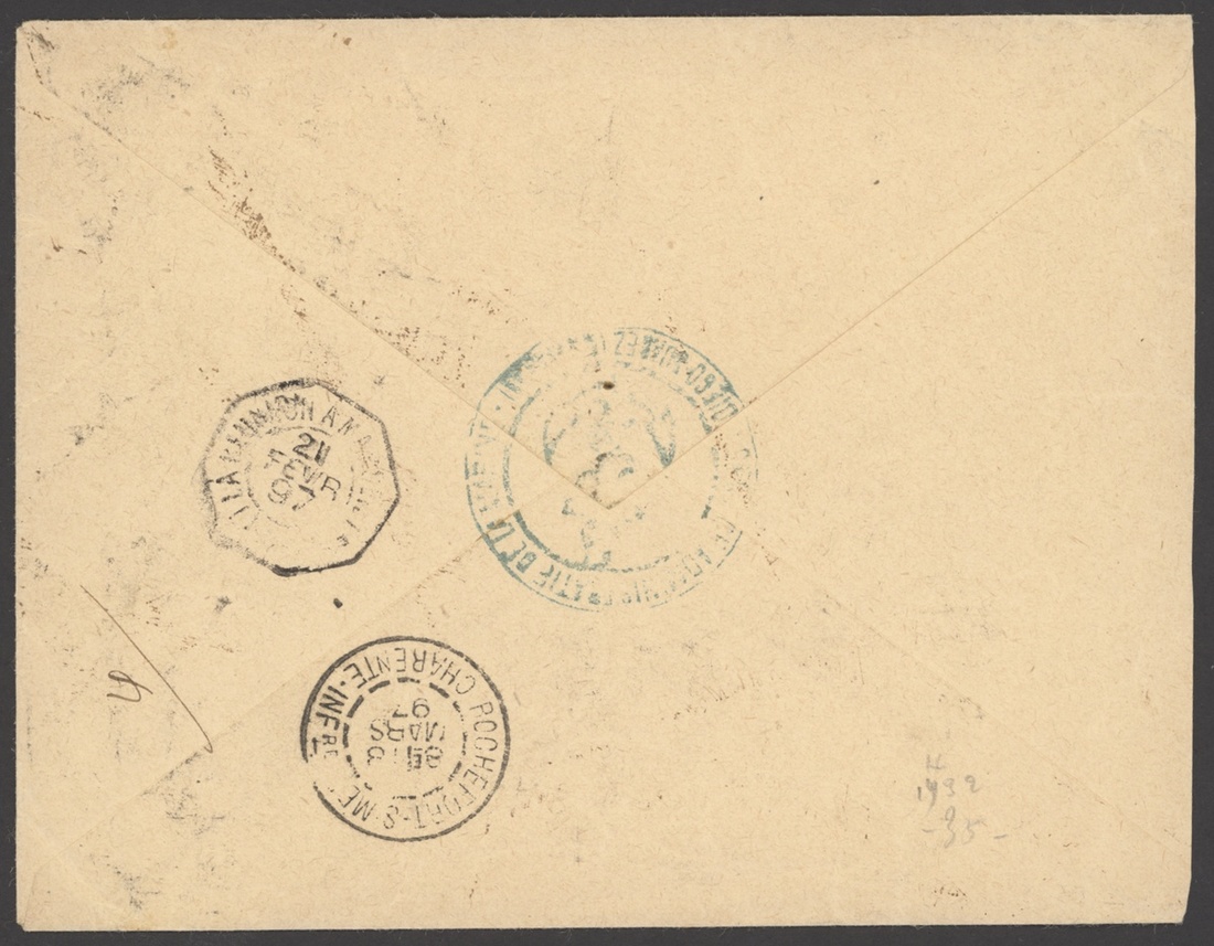 1897 (20 Feb.) envelope registered to Rochefort franked