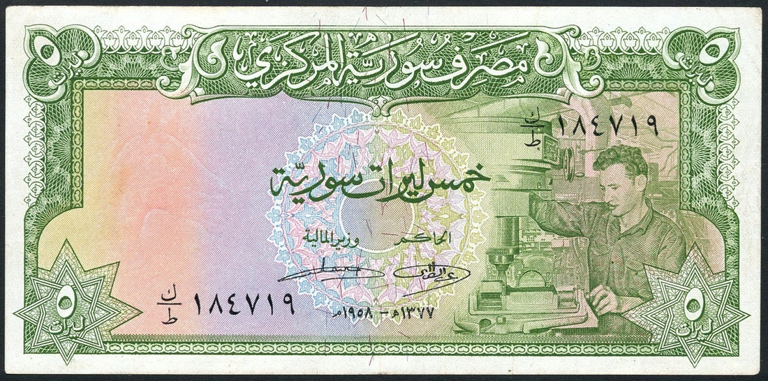 Cental Bank of Syria, £5, 1958, serial number 184719, (Pick 87, TBB B606a), extremely fine, light centre fold mark, minor stains on reverse