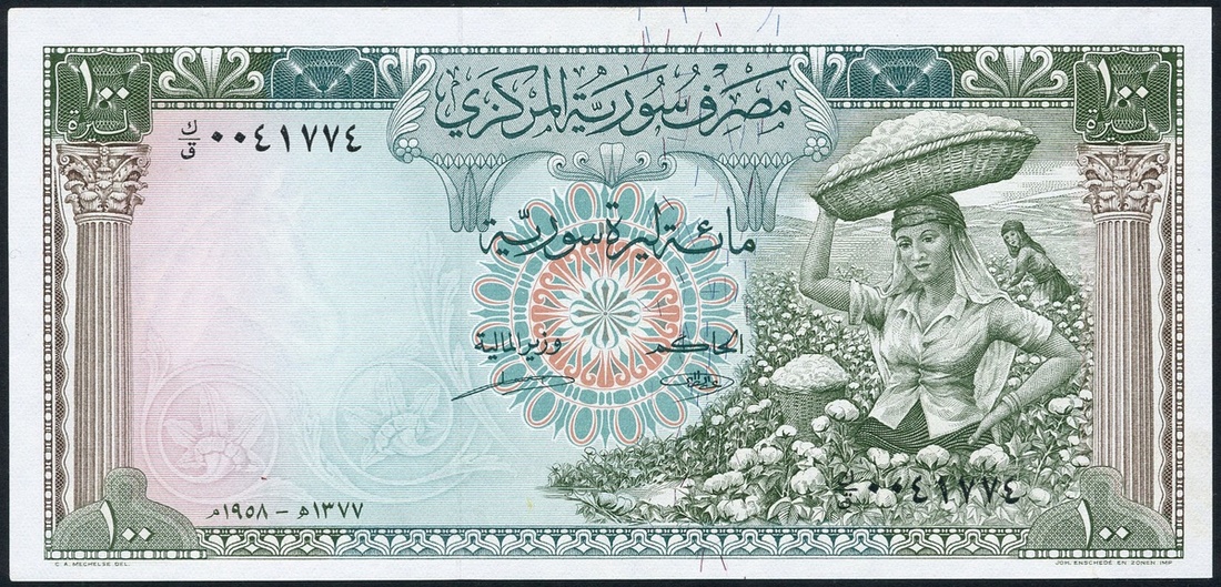 Cental Bank of Syria, £100, 1958, serial number 0041774, (Pick 91a, TBB B610a), uncirculated