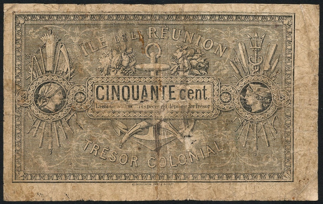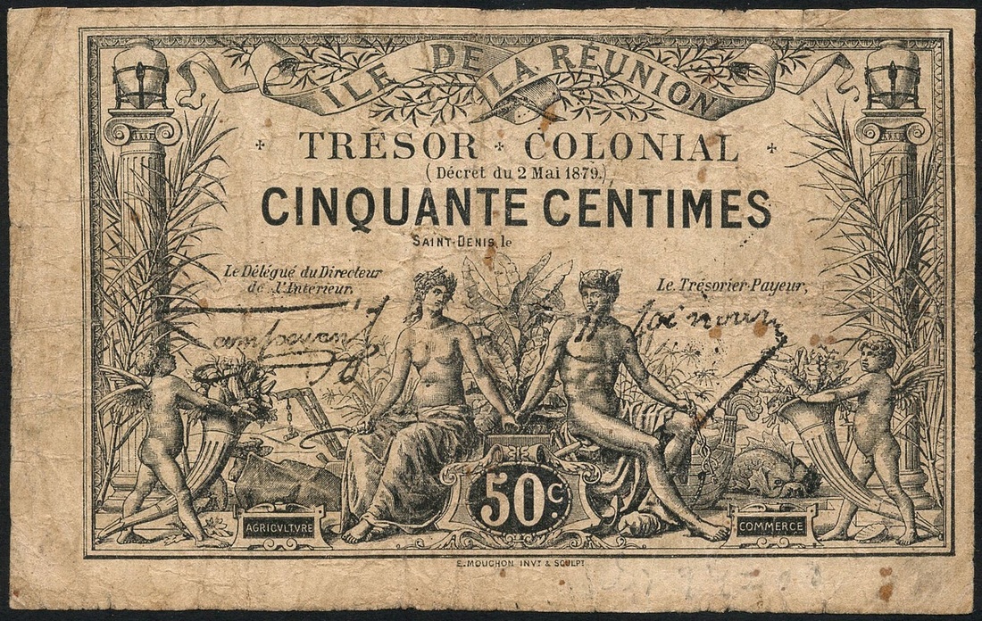 Ile De La Reunion, Tresor Colonial, 50 Centimes, 2 May 1879, no serial numbers, (Pick 8), about fine, tears, scarce