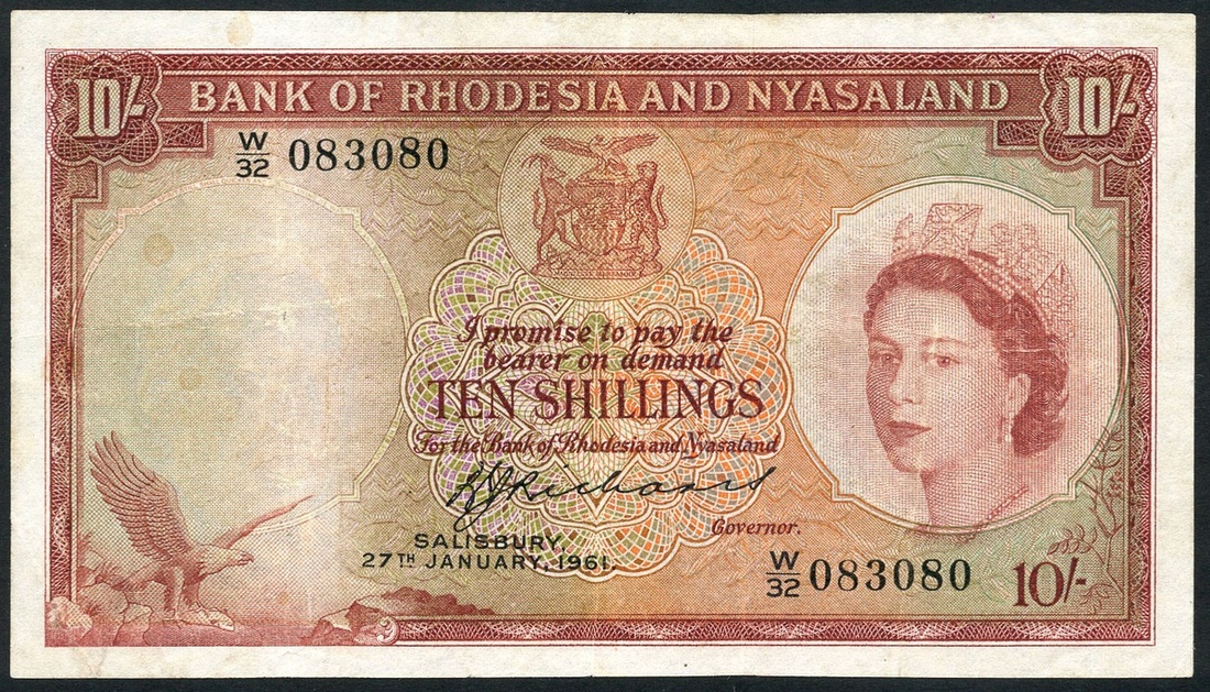 Bank of Rhodesia and Nyasaland, 10 shillings, 27 January 1961, serial number W/32 083080, (Pick 20b, TBB B101b32), pressed very fine, scarce