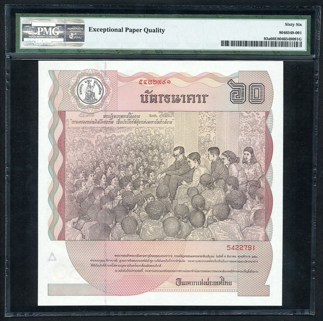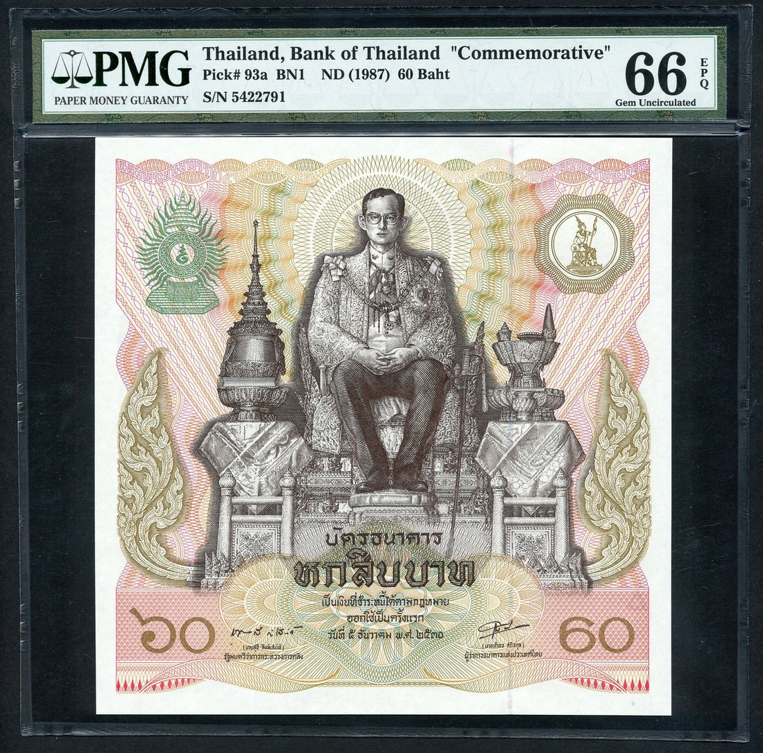 (x) Bank of Thailand, 60 Baht, ND (1987), serial number 5422791, commemorative issue for the King's 60th birthday, (Pick 93a), in PMG holder 66 EPQ Gem Uncirculated
