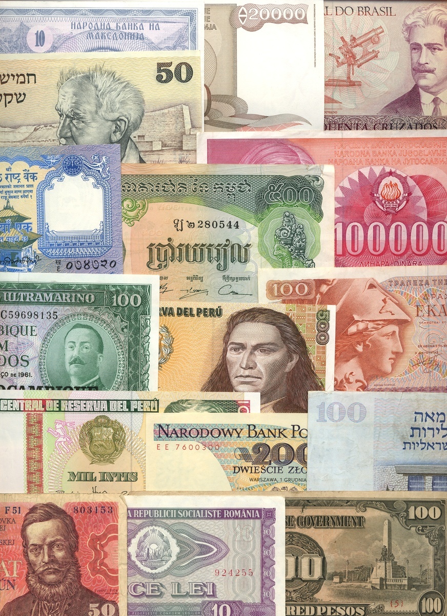 World Banknotes Mixed Lot, a large assortment of approximately 176x notes from various regions, mixed condition from very good to about uncirculated, Latin American notes tend to be in better condition, others show strong signs of circulation (approximately 176 notes)