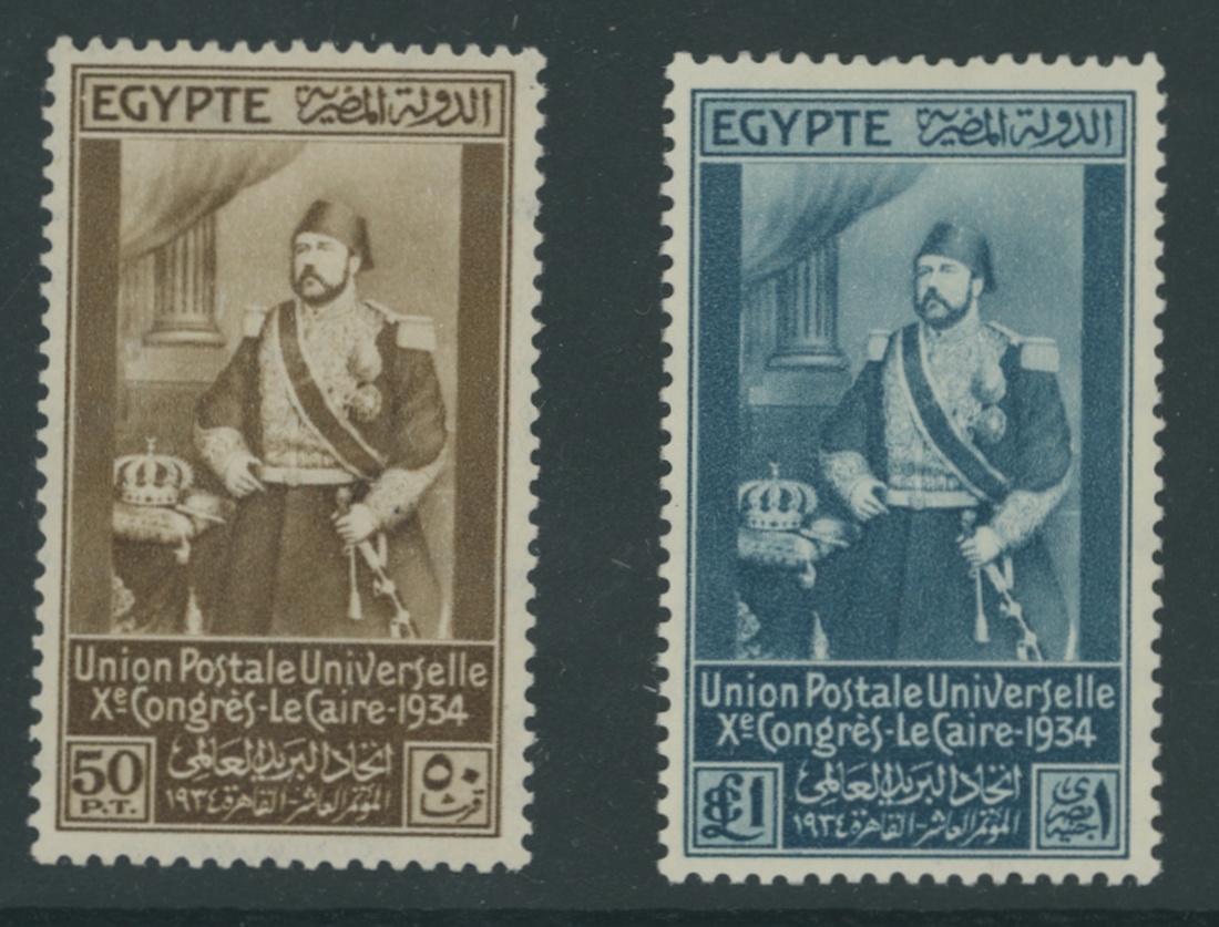 1934 U.P.U. Congress 50p. sepia and £E1 greenish blue, original gum; fine. S.G. 231-232, £825
