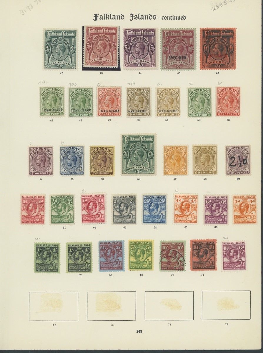 1878-1952 mint and used collection on pre-printed pages including 1878 1d. claret used, 1898 2/6d. and 5/- unused, 1904-12 set of eight mint (½d. and 1d. used), 1912-20 set to 5/- mint and 10/- and £1 overprinted