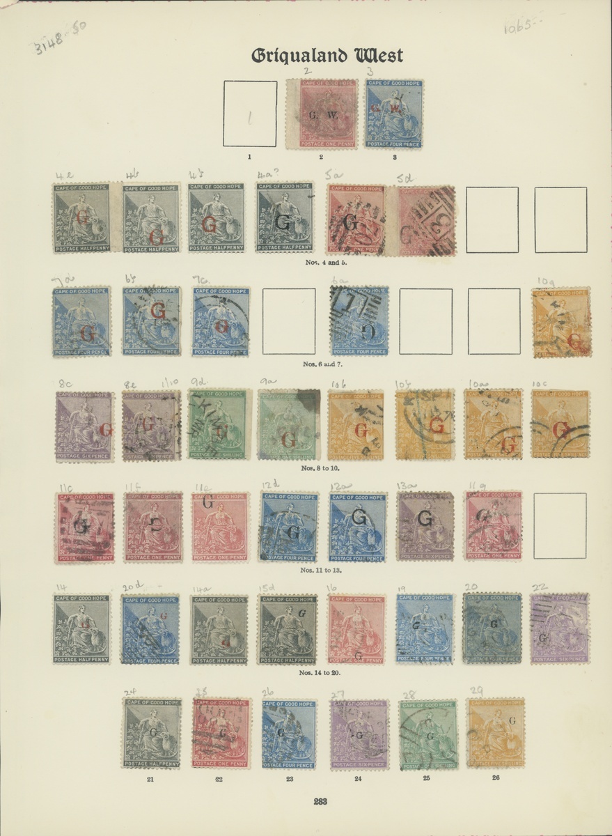 1877-79 mint and used on a pre-printed page including 1877 1d. carmine-red and 4d. dull blue used, then a range of overprint types from 1877-79; mixed condition