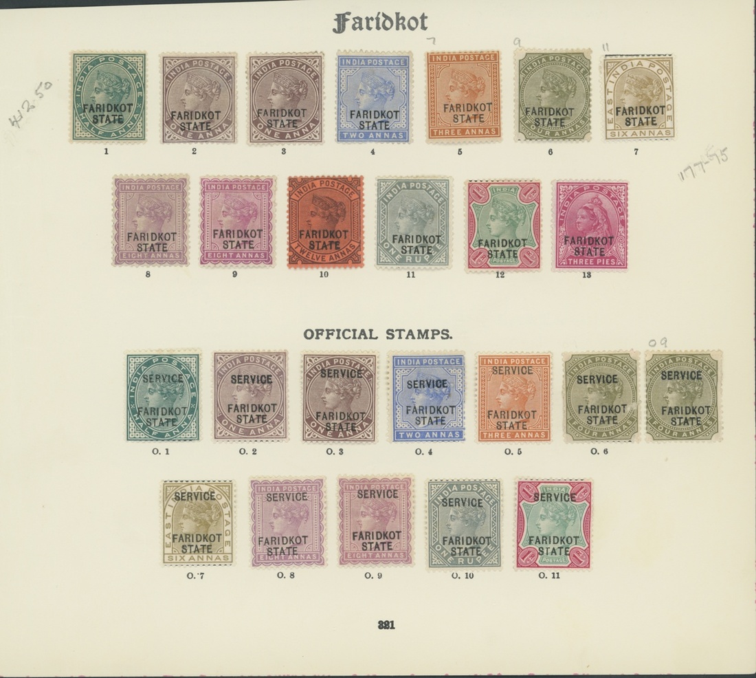 1887-1900 set to 1r. and 1887-1900 Official set to 1r., both sets hinged to pre-printed page, chiefly fine. S.G. 1-16, O1-O15, £450