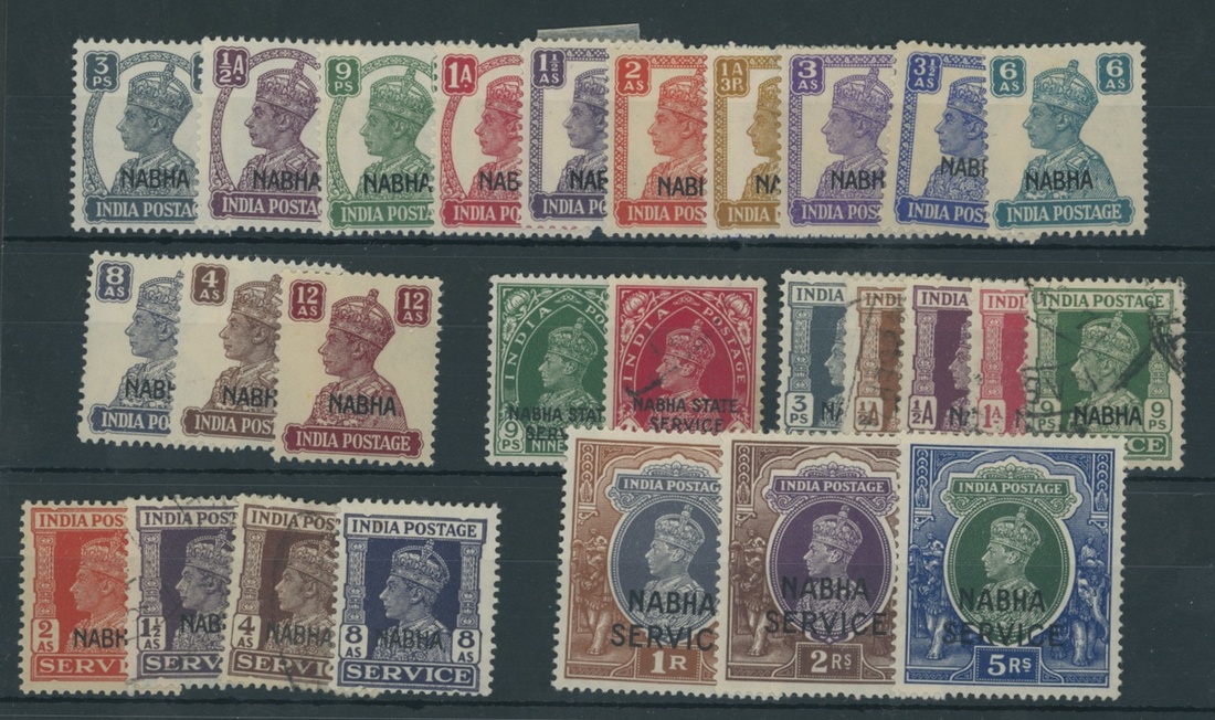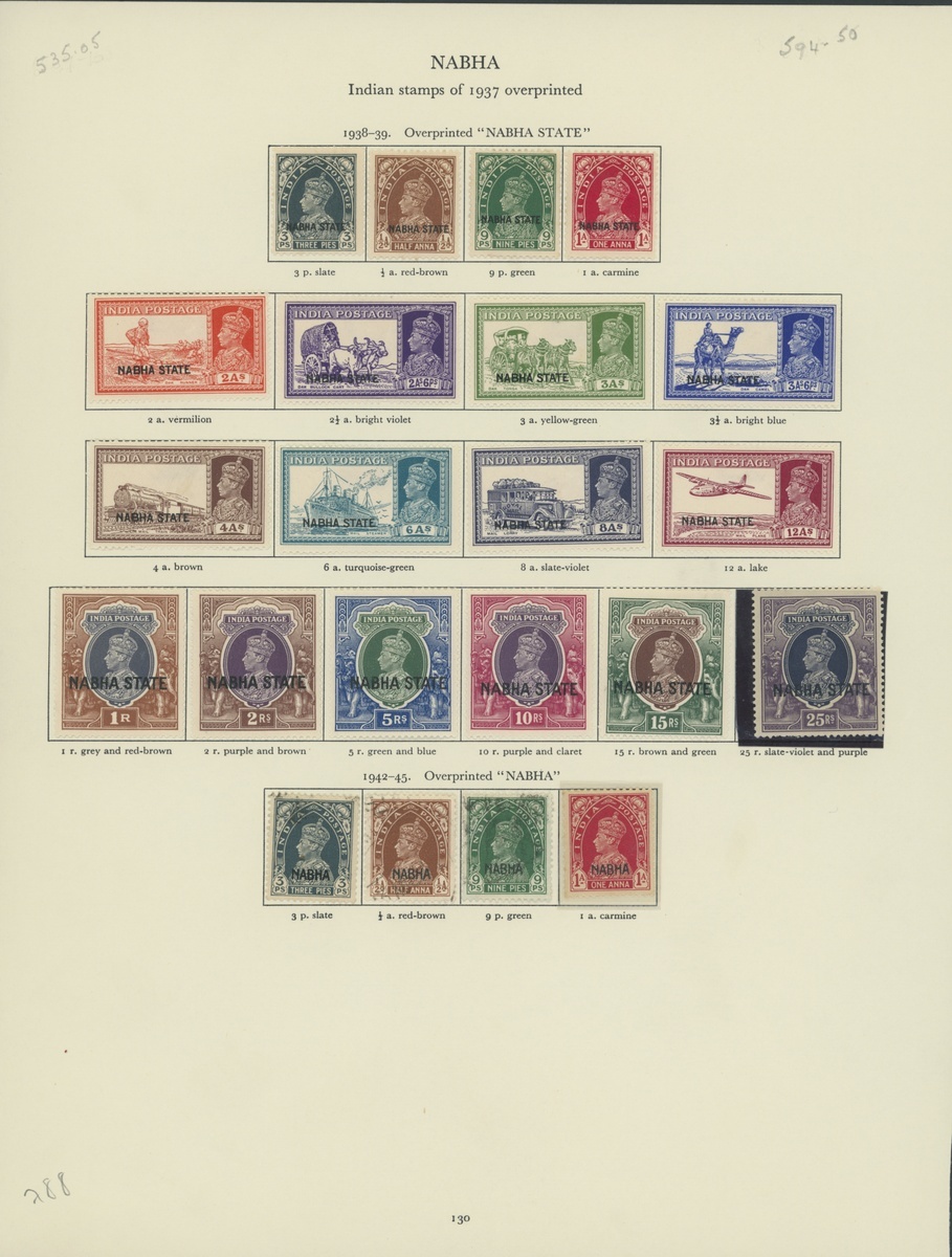 1938 set to 25r., 1940-43 set to 12a., 1940-43 Official set to 5r. etc. mint hinged to pre-printed page and on a stock card; chiefly fine. Cat. £1,200+