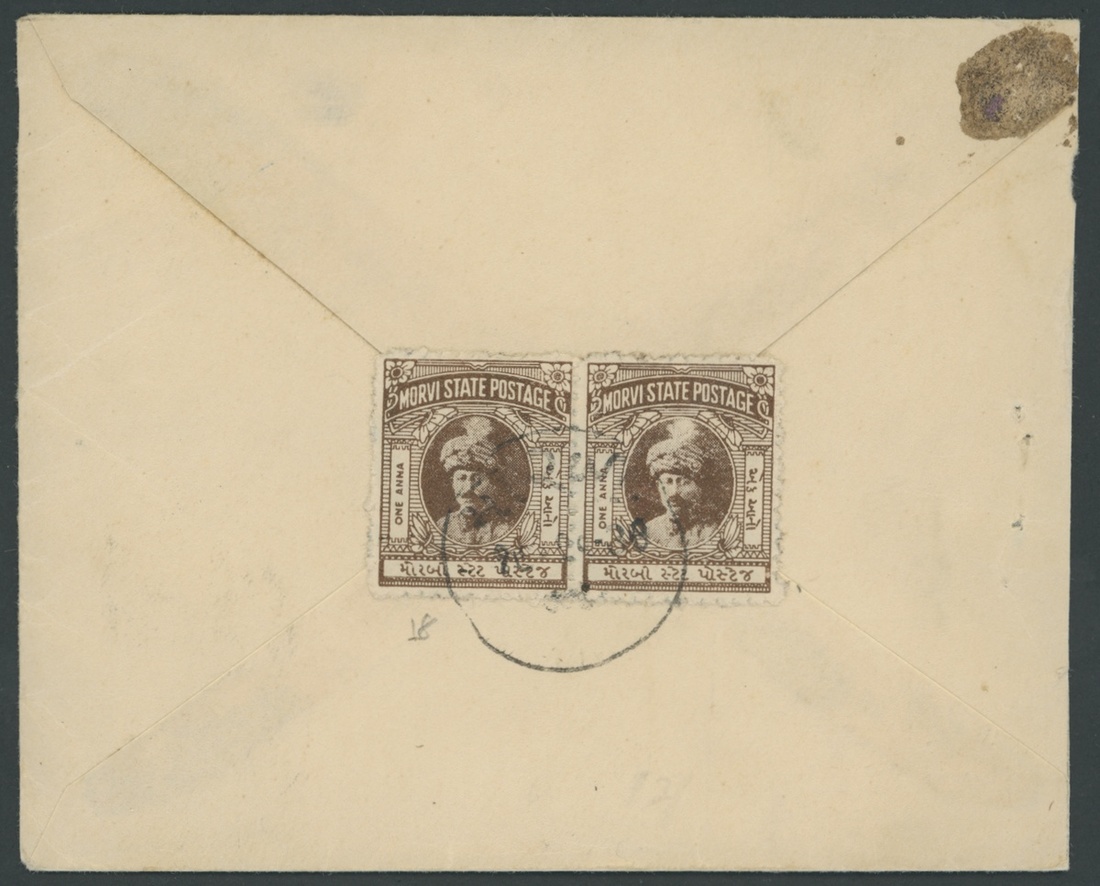 1935-48 1a. brown horizontal pair, neatly cancelled and tied on reverse of envelope (fractionally truncated at one side) addressed locally and with registration label on face; fine. S.G. 18