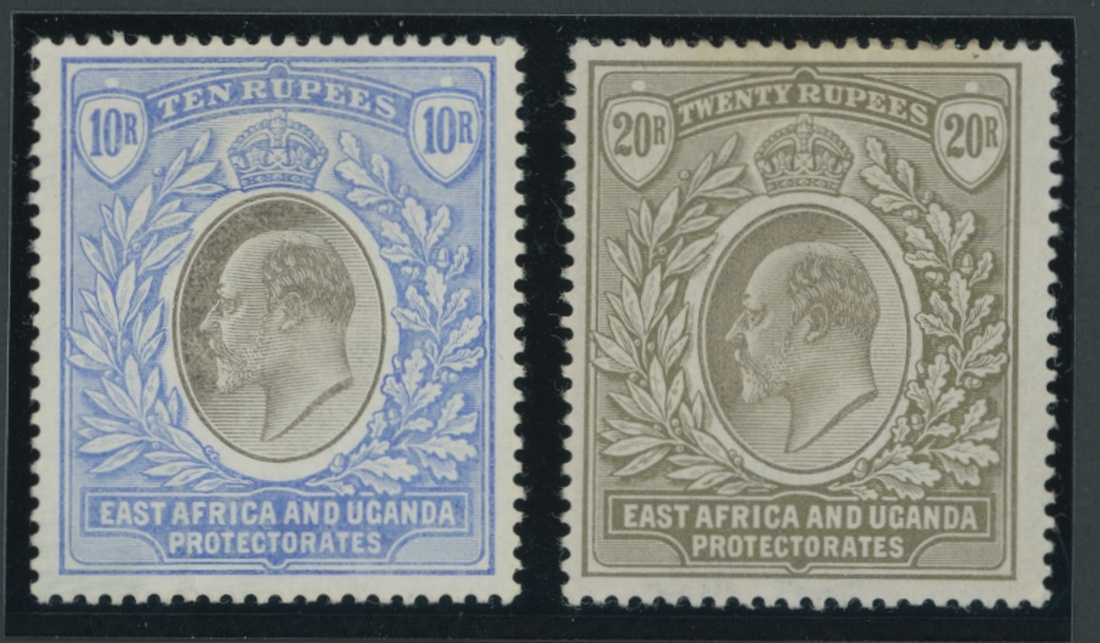 1903-04 10r. grey and ultramarine and 20r. grey and stone, mint; the 20r. with a little light stains at top, the 10r. fresh and fine. S.G. 14, 15, £1,250. Photo