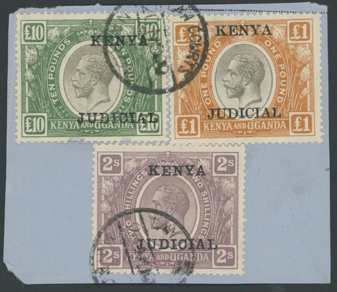 1922-27 2/- dull purple, £1 black and orange and £10 black and green, each overprinted
