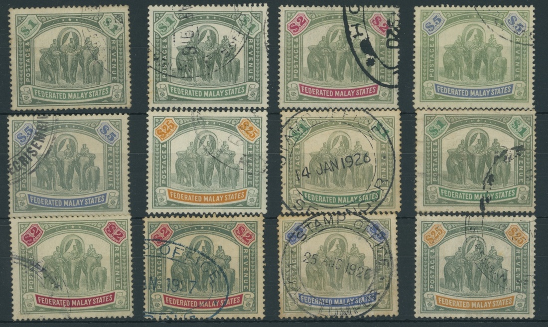 1904-22 MCA $1 (2), $2, $5 (2) and $25, 1922-34 Script $1 (2), $2 (2), $5 and $25, all fiscally cancelled, good to fine