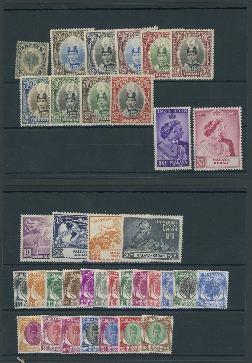 1912-49 mint and used selection on pages including 1912 set of fourteen mint, 1921-32 set, Malaya-Borneo Exhibition set mint, 1937 set of nine, 1950-55 set to $5 mint etc.