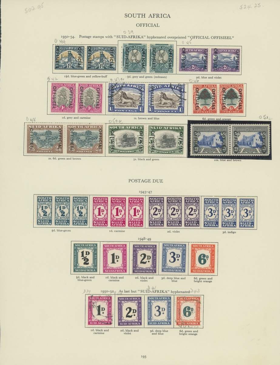 1910-54 mint and used collection on pre-printed pages including 1913-24 set to £1 used, 1925Air set of four mint, 1927-30 set used (1/- and 2/6d. mint), a good range of 1926-1950 Official stamps, 1939 and 1942-44 War Effort sets mint, Postage Due sets etc.