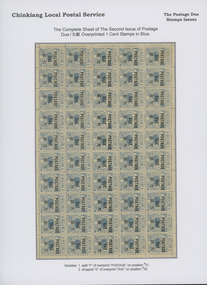 A collection on pages which includes the first overprint set, a good range of the second overprint including ½c. overprint in red (2), ½c. imperf. side margin, 1c. pair (used) and 10c. overprint inverted and 10c. double perforations plus sheets of fifty of 1c. (2) showing the positional varieties. (161)