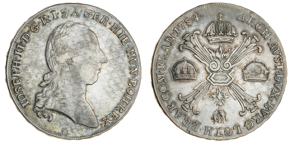 (x) Austria, Joseph II (1765-90), Kronentaler, 1784 B, Kremnitz, laureate head right, rev. crossed staves (Dav.1170), cabinet toning, lustrous extremely fine