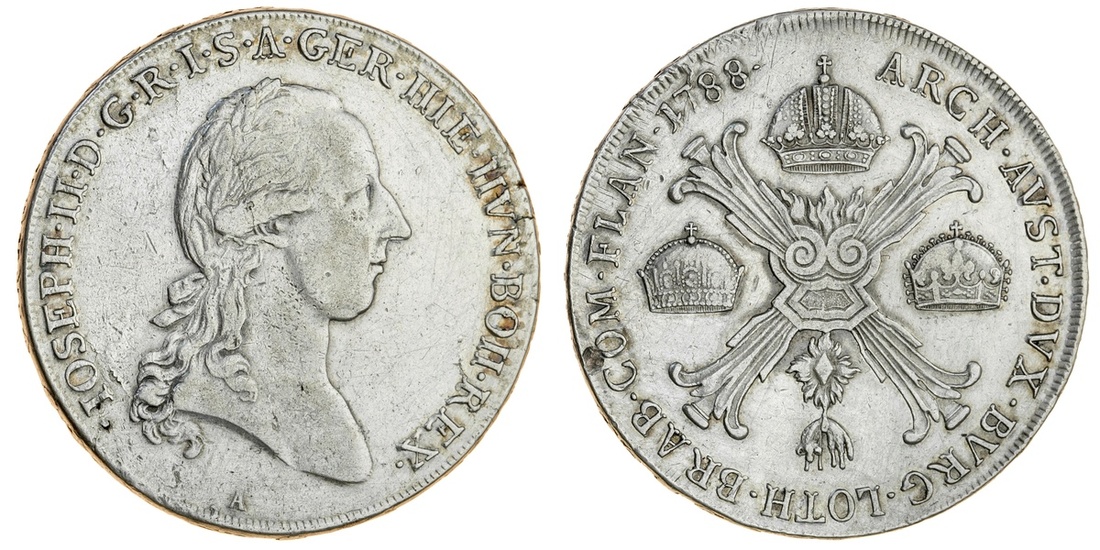 (x) Austria, Joseph II (1765-90), Kronentaler, 1788 A, Vienna, laureate head right, rev. crossed staves (Dav.1170), cleaned, very fine