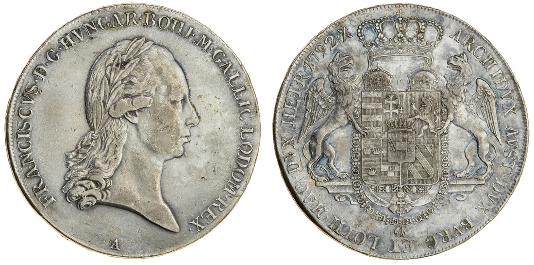 (x) Austria, Francis II (1792-1835), Thaler, 1792 A, Vienna, laureate head right, rev. crowned arms with griffin supporters (Dav.1176; KM 2157), rubbed on the highpoints but still with lustre, very fine, very rare