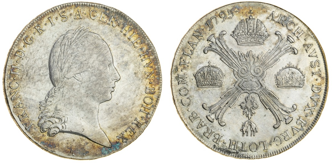 (x) Austria, Francis II (1792-1835), Kronentaler, 1795 A, Vienna, laureate head right, rev. crossed staves (Dav.1180), cleaned, very fine