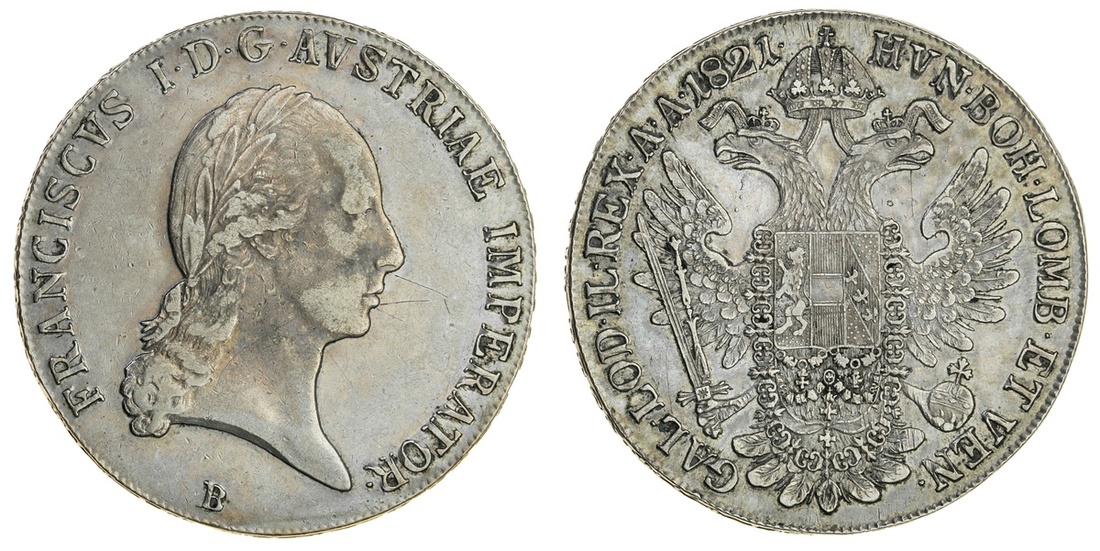 (x) Austria, Francis II (1792-1835), Taler, 1821 B, Kremnitz, laureate head right, rev. shield on crowned double-headed eagle (Dav.7), good very fine