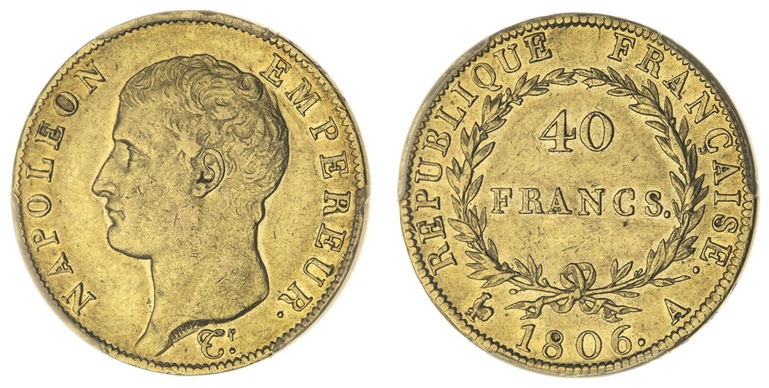 (g) France, Napoleon, as Emperor (1804-15), 40-Francs, 1806-A, Paris, bare head left, rev. value in wreath (Gad 1082; KM 675.1; Fr.481), a scarce date in series, in PCGS holder, graded AU55