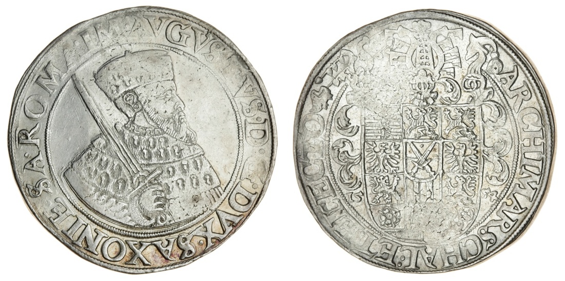 (x) Germany, Saxony, Albertine line, August (1553-86), Taler, 1554, Annaberg, capped bust with sword right, rev. mint mark shoe at end of legend, shield with three helms, dividing small date below (Dav.9791), some detail flat as usual, very fine
