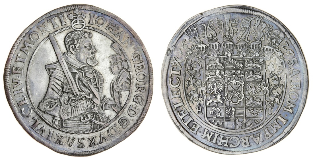 (x) Germany, Saxony, Johann Georg alone (1616-56), Taler, 1626, Dresden, half-length figure right, wearing armour and holding sword, rev. shield, dividing