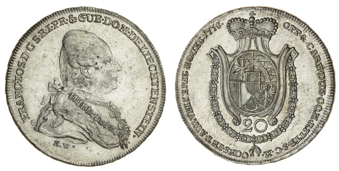 Liechtenstein, Franz Joseph (1772-81), 20-Kreuzer, 1778, Vienna, draped bust right, crowned shield in Collar of the Golden Fleece (Divo 82), extremely fine