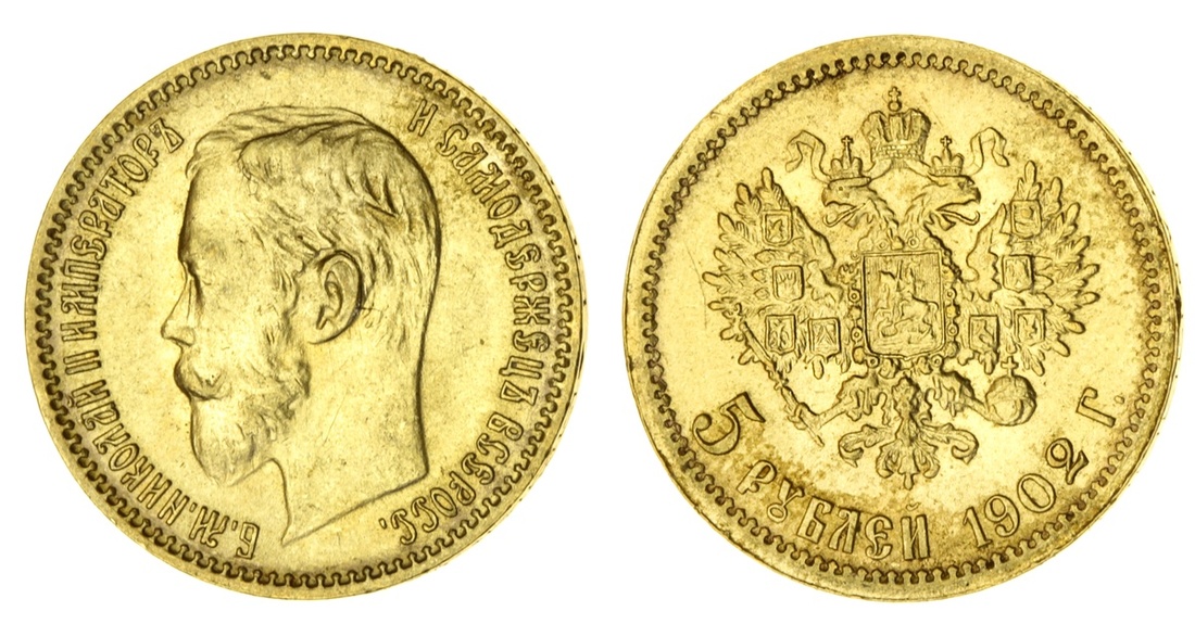(g) Russia, Nicholas II (1894-1917), 5-Roubles, 1902, St Petersburg, 4.30g (Bitkin 29; F.180; KM Y62; Sev 576; Uzd 0344), choice uncirculated, and in the cataloguer's opinion very harshly graded, in NGC holder, graded MS62 (Cert. #4861490-006)