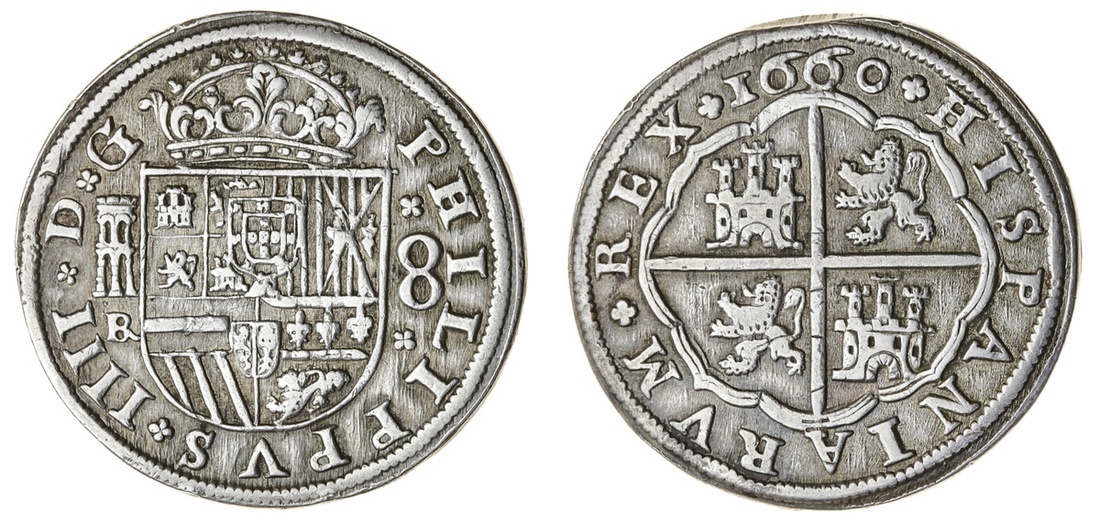 Spain, Philip IV (1621-65), 8-Reales, 1660, Segovia, 25.36g, crowned shield, dividing ornaments and mark of value, quatrefoil above and below 8 (Cal 591), once lightly cleaned with a scuff to rim at 12 o'clock on reverse, otherwise about very fine, rare