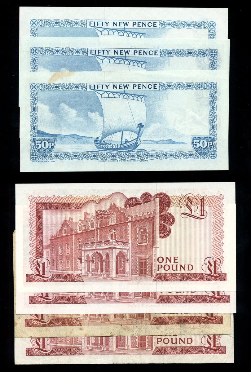 A group of Gibraltar and Isle of Man notes, Gibraltar, 10 shilling, 1958, £1 (4), 1942, 1958, 1965, 1971, £5, 1971, £1 (4), £5, (2), £10, 1975-88, £20, 2004, Isle of Man, £1, 1948, 50 pence (3), £1 (7), £5 (2), £10 (2),