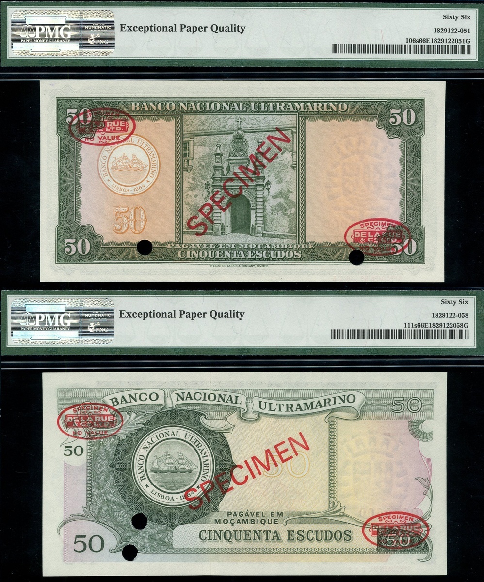 (Pick 15s, 14s, 13s, 12s, TBB B208cs, B207s, B206s, B205as), Black, Red, and Green Specimen and oval DLR Specimen overprints, in PMG holders, 100 Rupees, Minor Erasure, 64 Choice Uncirculated, at the time of cataloguing highest grade was 60 Uncirculated, especially rare in such grade, 10 Rupees 58 EPQ Choice Uncirculated, 5 Rupees 65 EPQ Gem Uncirculated, 1 Rupee 58 EPQ Choice Uncirculated (4)