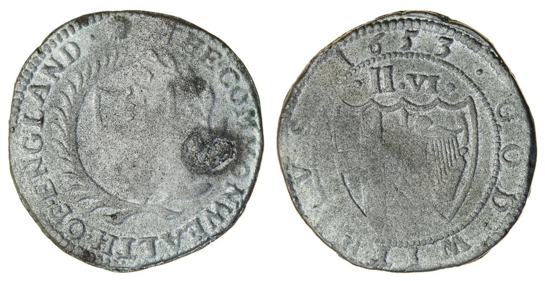 Commonwealth (1649-60), Halfcrown, a forgery, struck in spelter or tin, '1653', 12.43g, 1h, m.m. sun (on obv. only) (cf. ESC 25 [429]; cf. N.2722; cf. S.3215), probably a later imitation, nevertheless unusual, with a few spots of tin pest, otherwise almost fine