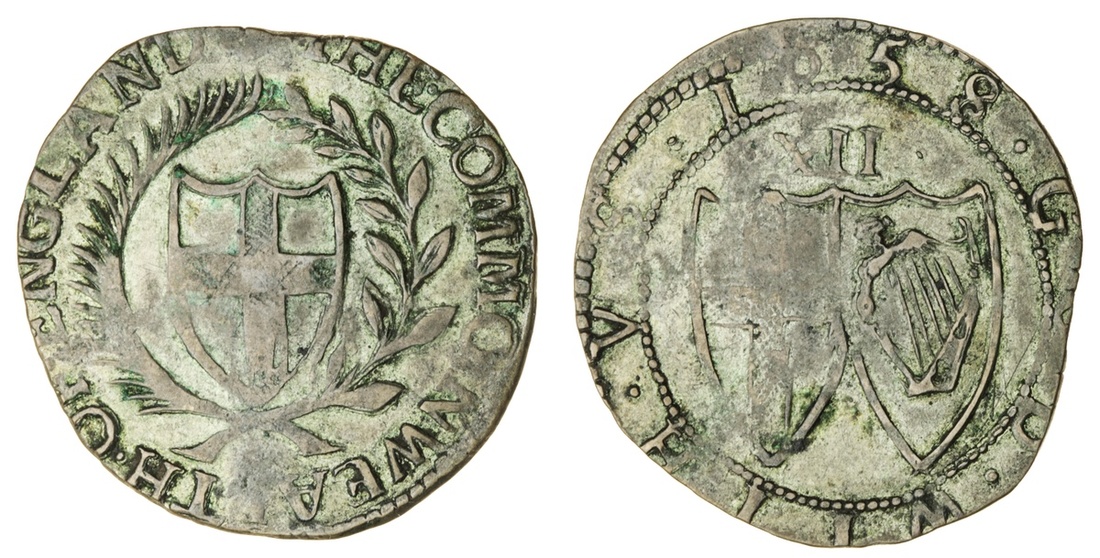 Commonwealth (1649-60), Shilling, a contemporary forgery from false dies, struck in base silver, '1658', 4.77g, 8h, m.m. anchor (on obv. only) (cf. ESC 161 [998]; cf. N.2725; cf. S.3218), of base fabric with superficial verdigris, otherwise a bolder fine, rare
