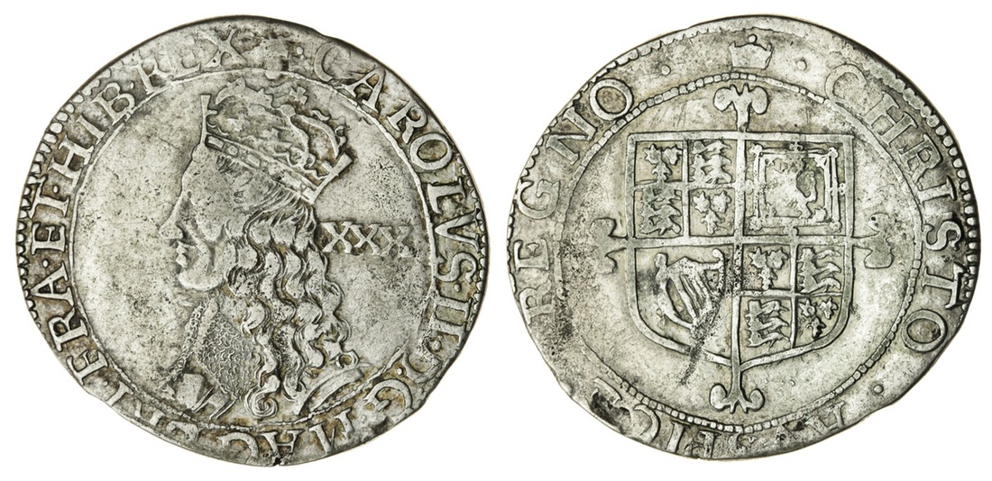 Charles II (1660-85), Halfcrown, a contemporary forgery from false dies, struck in fine silver, weight?g, 6h, m.m. crown, crowned, laureate and cuirassed bust left,
