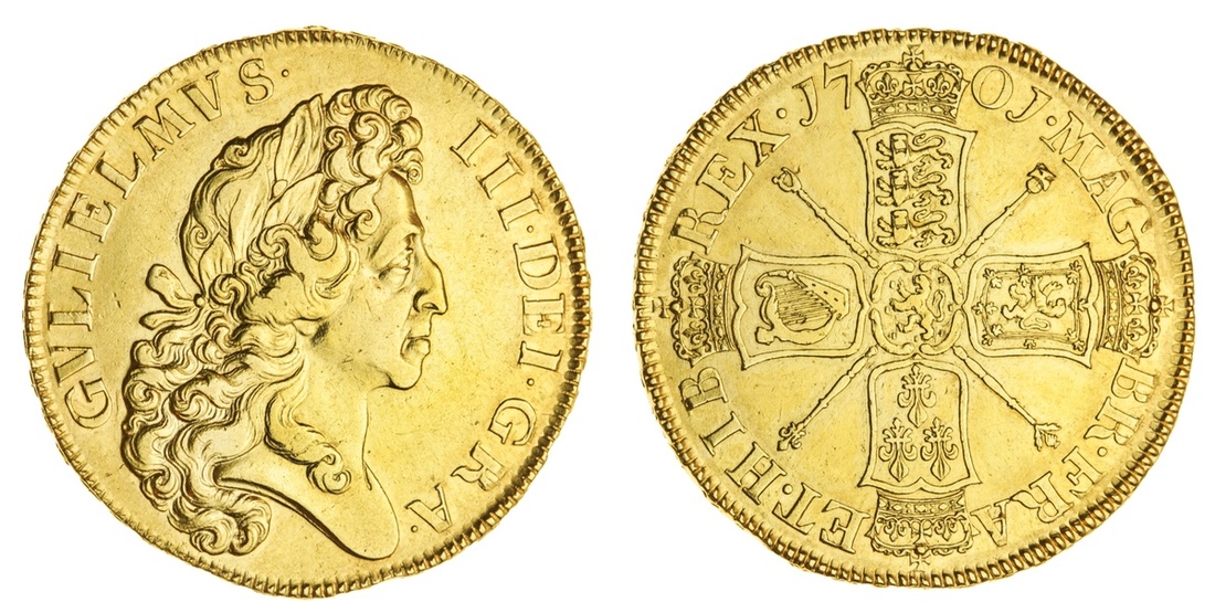 William III (1694-1702), 'Fine Work' Five-Guineas, 1701