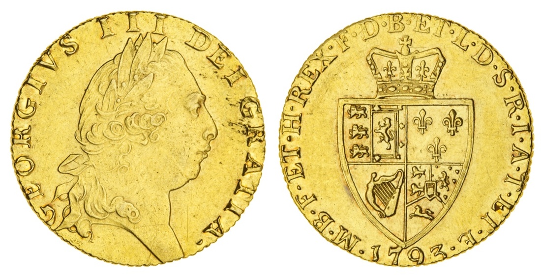 George III (1760-1820), Guinea, 1793, fifth head (MCE 397; S.3729), a trace of flecking, otherwise lustrous, about extremely fine