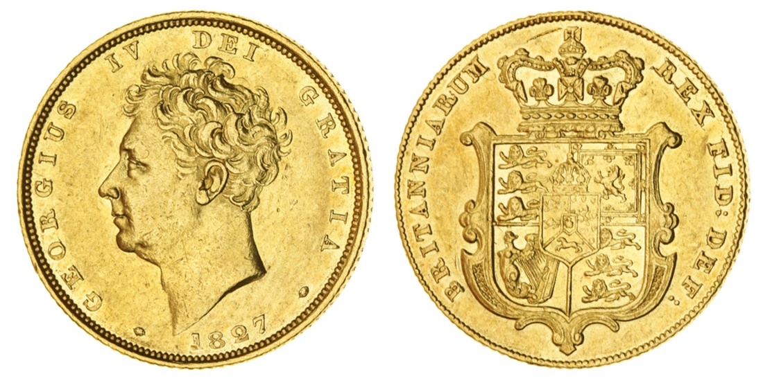 (g) George IV (1820-30), Sovereign, 1827 (Marsh 12; MCE 478; S.3801), a scuff above shield, otherwise residually lustrous, a bold very fine