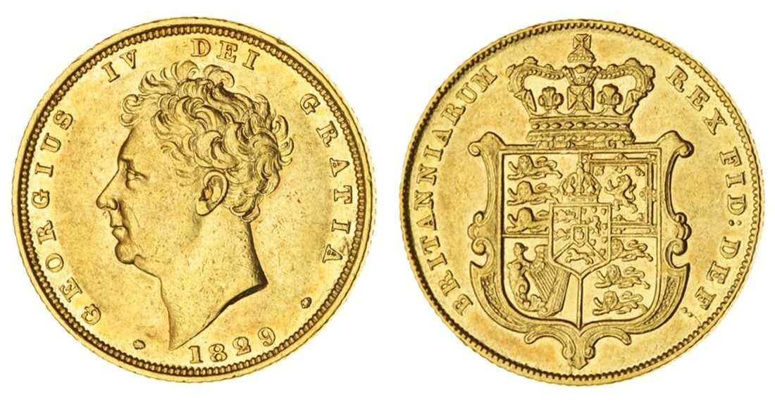 (g) George IV (1820-30), Sovereign, 1829 (Marsh 14; MCE 480; S.3801), a faint scuff at 1 o'clock, otherwise lustrous, good very fine