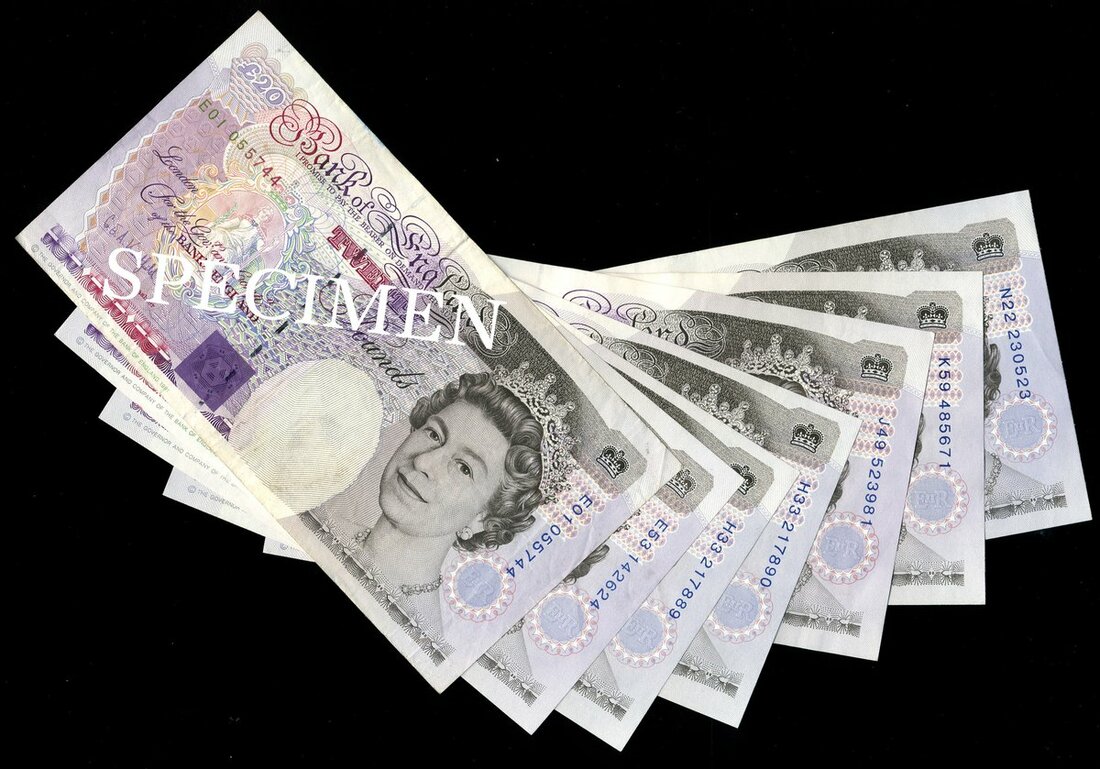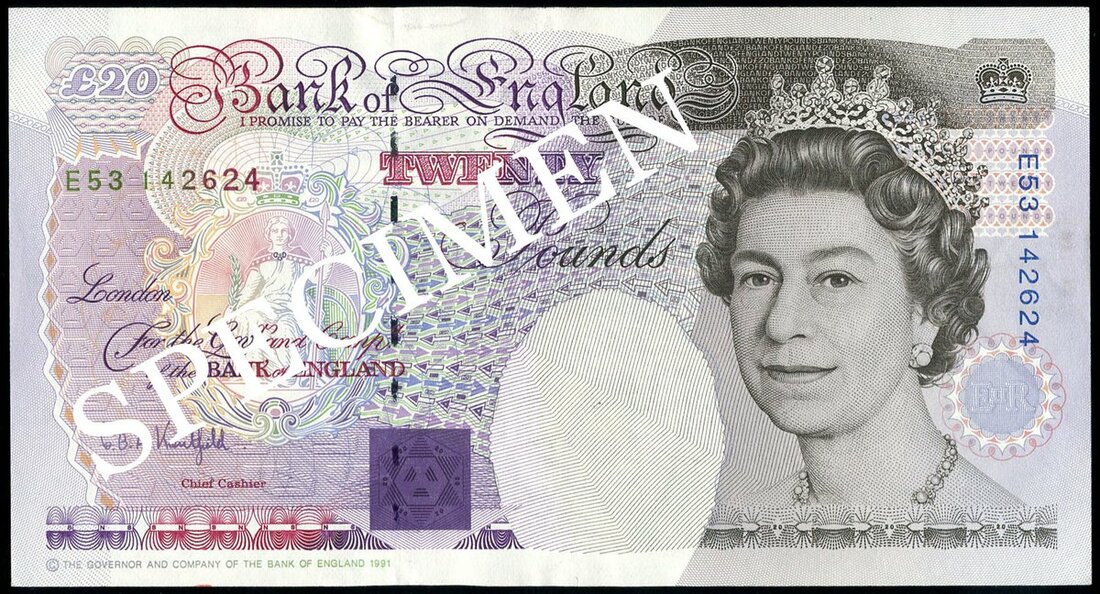 Bank of England, Graham Edward Alfred Kentfield (1991-1998), £20 (14), ND (1991), a near complete run of prefixes E through W but missing L, including H33, R57 and U15 consecutive pair, purple and multicoloured, Elizabeth II at right, Britannia at left, reverse purple, Michael Faraday and a lecture given by Faraday at the Royal Institution, also £20, prefix E01