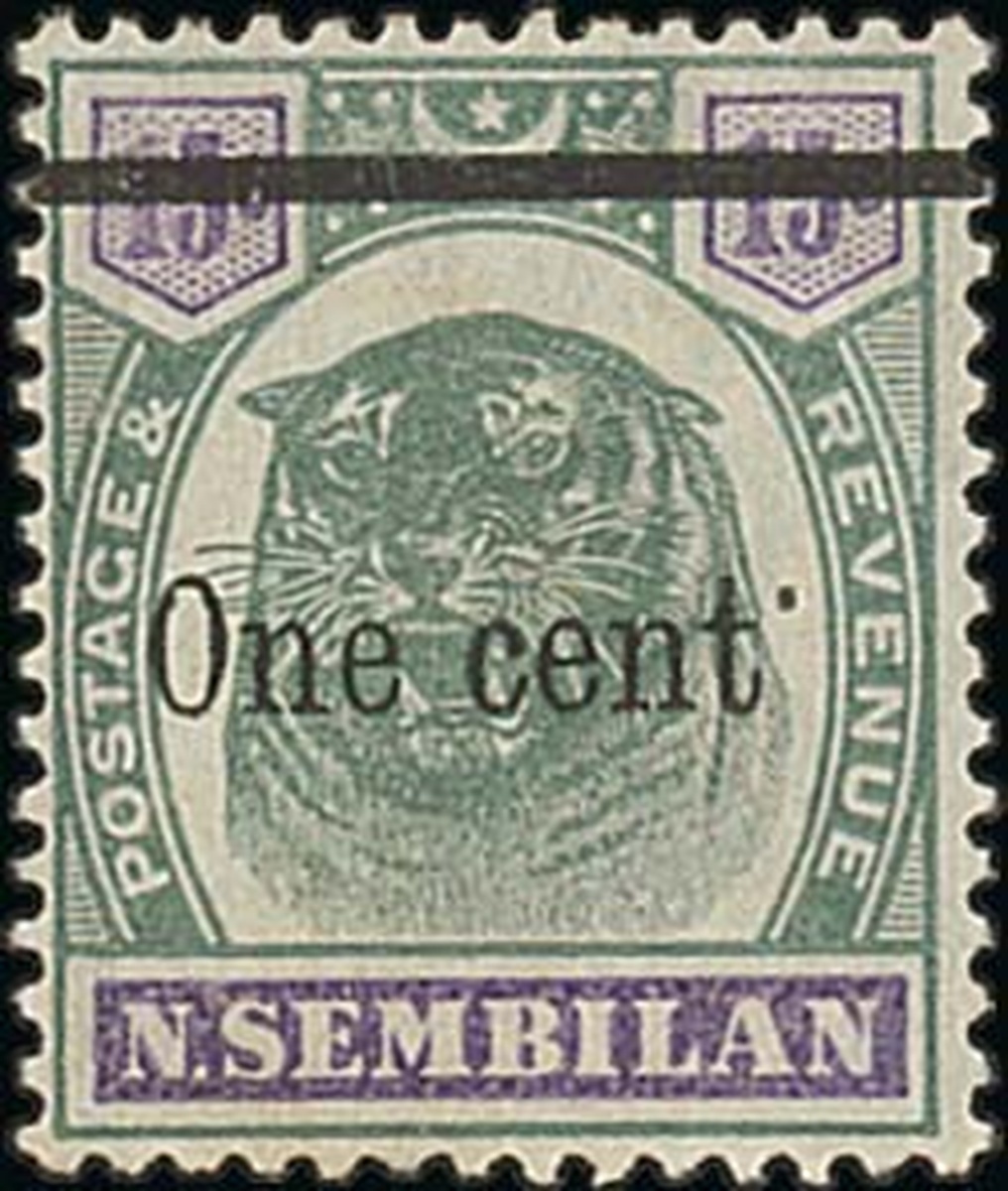 “One cent.” on 15c. violet and green showing raised stop, fine unused with large part original gum. S.G. 15a, £500. Photo
