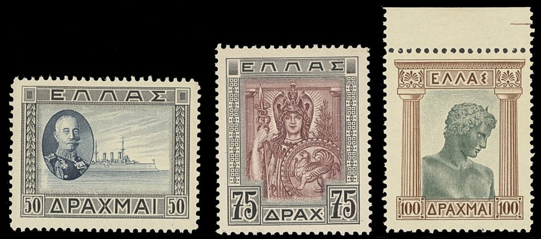 1933 Republic 50d., 75d. and 100d. (top marginal), fine unmounted mint. S.G. 475-477, £1,100