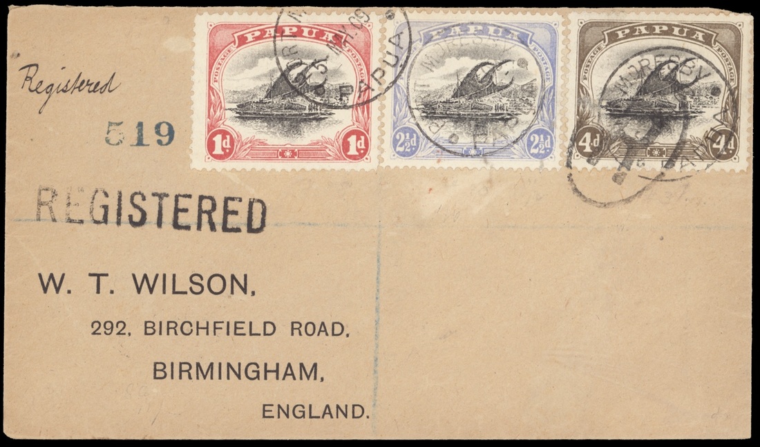 1909 (5 May) Wilson envelope registered to England, bearing 1907 litho wmk upright, perf 11 1d. and 2½d., and perf 12½ 4d., all tied by