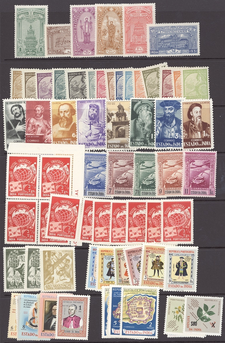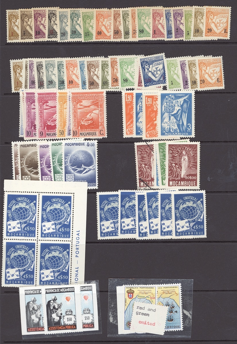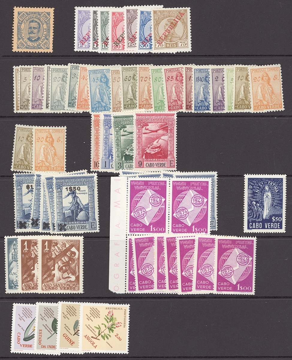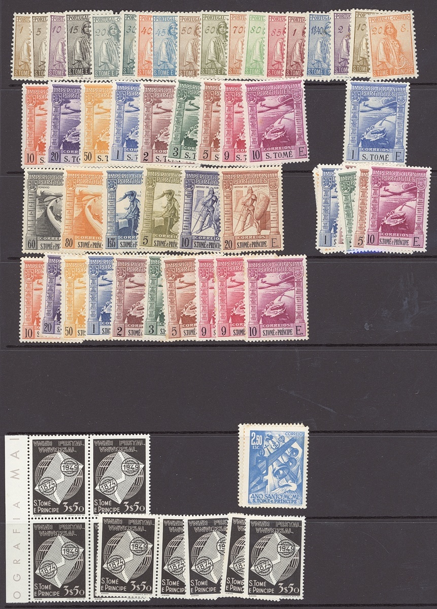 Mint selection on stockpages, including Azores 1928 Third Independence set, Cape Verde, Mozambique, Mozambique Company, Portuguese Guinea, Portuguese India 1931 St. Francis, 1933 1r. to 5rp., 1946 Portraits, St. Thomas & Prince 1934 1c. to 20E.,1938 Vasco da Gama "